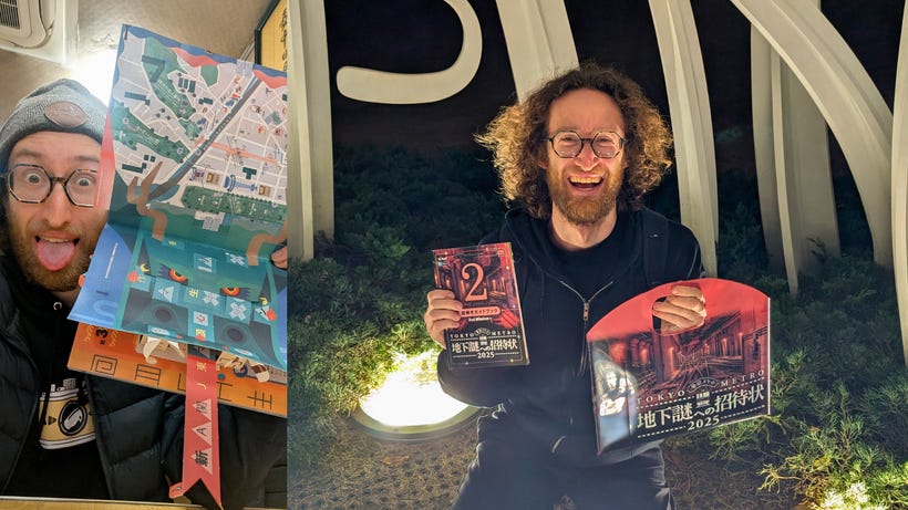 By far my favorite walking hunt was SCRAPâs 2025 Tokyo Metro Hunt (running through March 31, 2026)... which is also only in Japanese this year, though theyâve offered an English version in the past. It had such a brilliantly layered puzzle sequence and epic 3D reveals from flat components that Iâm still giddy about weeks later. If you can find a way to play it, I very highly recommend.