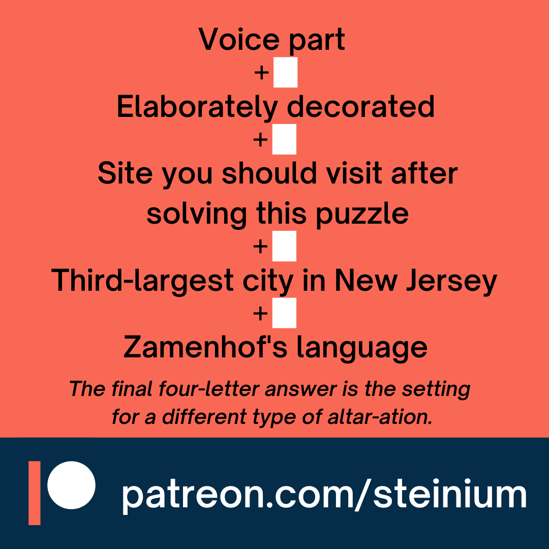 And, of course, all Patreon tiers will receive lots of fun behind-the-scenes content and bonus puzzles. If you enjoy this newsletter and want to help support my writing and puzzle design, in whatever capacity, I invite you to join my Patreon community.